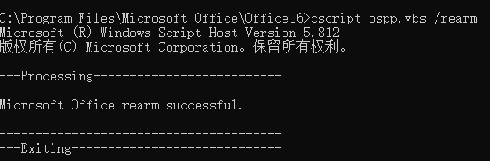 四、卸载完产品Key完成以后,执行:cscript ospp.vbs /rearm,执行完成后,重启电脑,然后使用激活客户端再次激活。