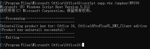 如下图所示,卸载产品Key成功: