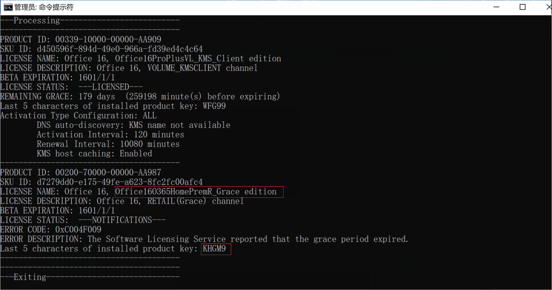 cscript ospp.vbs /unpkey:xxxxx,如上图所示请将xxxx替换为,KHGM9
