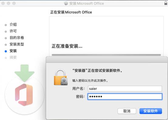 6.如果出现提示,请输入你的 Mac 登录密码,然后单击“安装软件”。(这是用于登录 Mac 的密码。)
