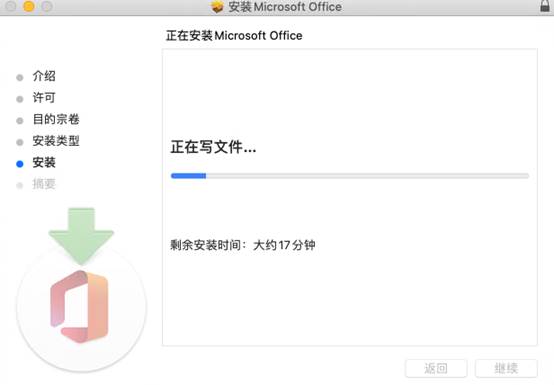 2.在第一个安装屏幕上,选择“继续”以开始安装过程。